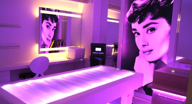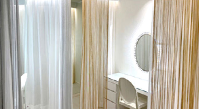 プライベートが守られるラグジュアリーなパウダールーム。夢のような施術のあと、ゆったりとした時間をお過ごしください。