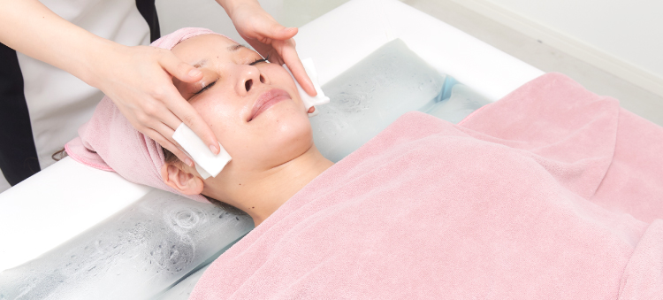 なくしたいお肌の余分な角質や毛穴の黒ずみをキレイに洗浄したい方にオススメのコースです。極小ミストで優しく洗い上げます。
